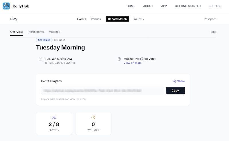 RallyHub is designed for pickleball players everywhere, with a focus on casual, social play. Most pickleball sessions are informal: friends meet at a public court, invite others via text, rotate partners, and occasionally want a lightweight record of what happened. These sessions rarely produce durable history, and most existing tools target competitive play.